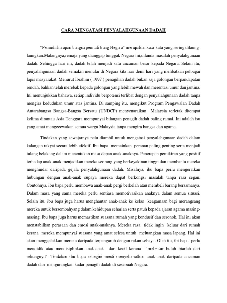 Cara Mengatasi Penyalahgunaan Dadah Pdf